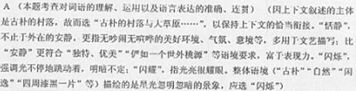 A.①古朴的村落与大草原和谐自然地融为一体②恬静③闪烁