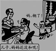 试题分析:本题考查图文转换的能力。描述画面内容时,要讲到三个方面:厨房情景、小孩状况、大人行为。寓意表述也要分两个方面:一是针对大人的行为举止,一是对于小孩的影响。
