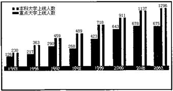 2、语言运用题 下面图表表现的河北某中学近年来的高考升学情况,从中可以得出怎样的结论?请用一句话加以概括。这张图表说明,该中学??????????????????????????????????????。