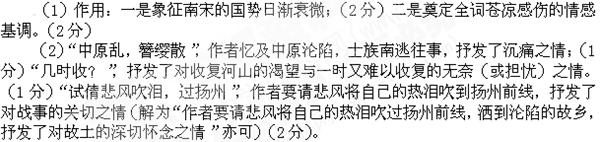 ⑴上片中“万里夕阳垂地,大江流”一句在全词中有哪些作用?(4分)