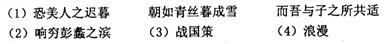 (1)从自然中体会人生,从生活中领悟哲理,是古人对人类自身命运的思考和关照。曹孟德面对莽苍大海,感受到了“星汉灿烂,若出其里”的博大;屈原从时光的流逝中,领悟到了“惟草木之零落兮, ” 的时不我待;李白从黄河水的汹涌奔腾里,体会到了“君不 见高堂明镜悲白发, ” 的岁月匆匆;苏轼通过游赤壁,抒发了“取之无禁,用之不竭,是造物者之无尽藏也, ”的欣喜……