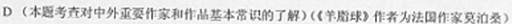 D.美国作家欧·亨利是十九世纪世界短篇小说巨匠之一,其代表作有《麦琪的礼物》《警察和赞美诗》《羊脂球》等。