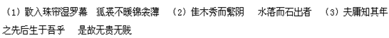 参考答案:⑴醉翁之意不在酒,在乎山水之间也。⑵国破山河在 感时花溅泪⑶耳得之而为声,目遇之而成色