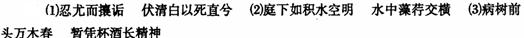 本题解析:此类型的题目考查学生对古诗文的识记能力,考查等级为A.要求学生在平时的学习中,多积累,多识记古诗文, 还应注意“名句”的具体意境应用。