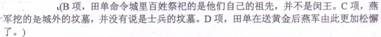 D.田单收集百姓的黄金,命令即墨的富豪赠给骑劫,说:“即墨立刻投降,希望不要掳掠我同族的妻妄,令他们安居。”骑劫非常高兴,燕军从此开始松懈。