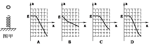 5、选择题 如图甲所示,一根轻弹簧竖直立在水平地面上,下端固定。一物块从高处自由下落,落到弹簧上端,将弹簧压缩至最低点。能正确反映上述过程中物块的加速度的大小随下降位移x变化关系的图像可能是图乙中的?