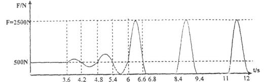 (1)曲线一开始是运动员停在蹦床上,压力是500N。于是运动员重力是500N。于是运动员质量50Kg