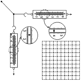 (2)实验过程中,将橡皮筋的一端固定在A点,另一端拴着两根细绳,每根细绳分别连着一个量程为5N、最小刻度为0.1N的弹簧测力计。沿着两个不同的方向拉弹簧测力计,当橡皮筋的活动端拉到O点时,两根细绳相互垂直。如图所示,这时弹簧测力计的读数分别为_____________N和_____________N(只须读到0.1N)。