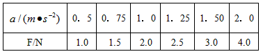 (1)当小车质量m一定时,测得小车在不同拉力F作用下运动的加速度a。如表所示