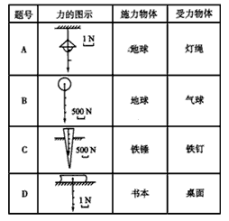 1、选择题 如下表所示,关于力的图示及受力物体和施力物体的说法正确的是