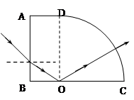 5、计算题 如图所示为用某种透明材料制成的一块柱形棱镜的截面图,圆弧CD为半径为R的四分之一的圆周,圆心为O,光线从AB面上的某点入射,入射角