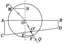 1、计算题 如图所示,是利用插针法测定玻璃砖的折射率的实验得到的光路图.玻璃砖的入射面AB和射出面CD并不平行,则: