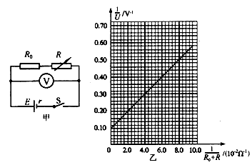 ,R0是保护电阻,电压表内阻对电路的影响可忽略不计,连接好电路后,闭合开关S,改变电阻箱接入电路的电阻值,读取电压表的示数。根据读取的多组数据,画出图乙所示的图象。?