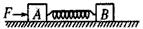 1、选择题 如图所示,A、B两物体的质量分别为m和2m,中间用轻弹簧相连,水平面光滑,在水平推力F作用下,A、B两物体一起以加速度a向右做匀加速直线运动。当突然撤去推力F的瞬间,A、B两物体的加速度大小分别为