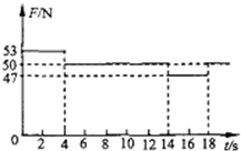 4、选择题 某位同学为了研究超重和失重现象,将重为50N的物体带到电梯中,并将它放在传感器上,电梯由起动到停止的过程中,测得重物的压力一时间变化的F-?图象如图所示.t1=3s设在和t2=8s时电梯的速度分别为v3和v8.由此他做出判断