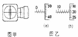 1、填空题 在用双缝干涉测单色光波长的实验中,当分划板中心刻线从视场中的第2条亮纹移到第7条亮纹时,测量头(甲)上的两次读数图乙(a)(b)所示,a、b位置时游标卡尺读数如图,则a位置时游标卡尺的读数为_____________,b位置时游标卡尺的读数为_________? ____,若双缝到屏的距离是1.2m,双缝间距是0.4mm,则该单色光波长是?nm(保留3位有效数字)。