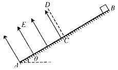 1、计算题 (10分)如图所示,倾角为θ的斜面AB是粗糙且绝缘的,AB长为L,C为AB的中点,在A、C之间加一方向垂直斜面向上的匀强电场,与斜面垂直的虚线CD为电场的边界。现有一质量为m、电荷量为q的带正电的小物块(可视为质点),从B点开始在B、C间以速度υ0沿斜面向下做匀速运动,经过C后