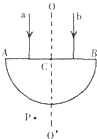 4、选择题 如图为半圆形的玻璃砖,C为AB的中点,OO′为过点C的AB面的垂线,a、b两束不同频率的单色可见细光束垂直AB边从空气射入玻璃砖,且两束光在AB面上入射点到C点的距离相等,两束光折射后相交于图中的P点,以下判断正确的是( )