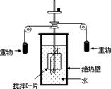 5、选择题 图为焦耳实验装置图,重物下落时带动叶片转动,搅拌容器中的水,由于摩擦水温升高.关于这个实验,下列表述正确的是