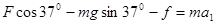 2、计算题 (14分)如图,将质量m=1kg的圆环套在固定的倾斜直杆上,杆的倾角为37°,环的直径略大于杆的截面直径.对环施加一位于竖直平面内斜向上与杆夹角为37°的拉力F=10N,使圆环由静止开始沿杆加速度向上运动,已知环与杆间动摩擦因数μ=0.5.(g取10m/s2)求: