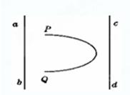 2、选择题 真空中有两根长直金属导线平行放置,其中一根导线中通有恒定电流.在两导线所确定的平面内,一电子由P点开始运动到Q的轨迹如图中曲线PQ所示,则一定是: