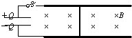 4、选择题 如图所示,光滑平行金属导轨水平放置在均匀磁场中,磁场方向与导轨平面垂直.质量为m,电阻为R的金属棒静止在导轨上.导轨的一端经电键与带有等量异号电荷(电量均为Q)的平行导体板连接.开始时电键S处于打开状态,当闭合电键时,发现导体棒开始运动.已知两导体板之间的电势差与导体板所带电量成正比.下列说法中正确的是( )