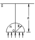 3、计算题 一束截面为圆形(半径为R)的平行单色光正面射向一玻璃半球的平面,如图所示,经折射后在屏S上形成一圆形光斑。已知入射光的波长为λ、功率为P,玻璃半球的半径为R,折射率为n,屏S到球心O的距离为d(d>3R)