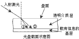 2、选择题 光盘上的信息通常是通过激光束来读取的。若激光束不是垂直入射到盘面上,则光线在通过透明介质层时会发生偏折而改变行进的方向。如图所示为一束激光(红、蓝混合)入射到光盘面上后的折射情况。则下列说法中正确的是