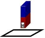 4、计算题 桌面上放着一个单匝矩线圈,线圈中心上方一定高度上有一竖立的条形磁体(如图),此时线圈内的磁通量为0.04Wb。把条形磁体竖放在线圈内的桌面上时,线圈的磁通量为0.12Wb。分别计算以下两个过程中线圈中的感应电动势: