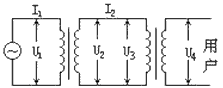 5、计算题 某发电厂发电机的输出总功率P=100 kW,发电机两端电压U1=250V,向远处送电的输电线的总电阻R=8Ω.要使传输电线上的功率损失不超过输送总功率P的5%,用户得到的电压U4又正好是220V,用如图的电路输电。求