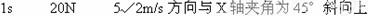 5、计算题 在光滑的水平面上有一直角坐标.质量为m=4 kg的物体,沿y轴正方向以大小为5 m/s的初速度通过坐标原点O,此时给物体施加一沿x轴正方向的恒力F。一段时间后物体恰好通过点P,P点的坐标为(2.5 m,5 m)。求: