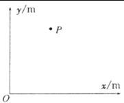 5、计算题 在光滑的水平面上有一直角坐标.质量为m=4 kg的物体,沿y轴正方向以大小为5 m/s的初速度通过坐标原点O,此时给物体施加一沿x轴正方向的恒力F。一段时间后物体恰好通过点P,P点的坐标为(2.5 m,5 m)。求: