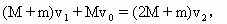 (1)m落在车中沙箱时,小车与m速度一体化,有