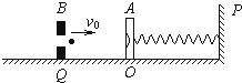 1、简答题  如图所示,质量M=0.040kg的靶盒A静止在光滑水平导轨上的O点,水平轻质弹簧一端栓在固定挡板P上,另一端与靶盒A连接.Q处有一固定的发射器B,它可以瞄准靶盒发射一颗水平速度为v0=50m/s,质量m=0.010kg的弹丸,当弹丸打入靶盒A后,便留在盒内,碰撞时间极短.不计空气阻力.求:弹丸进入靶盒A后,弹簧的最大弹性势能为多少?