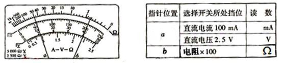 2、计算题 Ⅰ.(6分)用多用电表进行了几次测量,指针分别处于a、b的位置,如图所示。若多用电表的选择开关处于下面表格中所指的档位,a和b的相应读数是多少?请填在表格中。