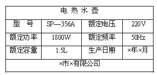 4、选择题 从某电热水壶的铭牌,可推算出该电热水壶正常加热10min产生的热量为