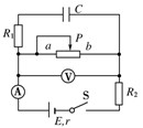 5、选择题  电动势为E、内阻为r的电源与定值电阻R1、R2及滑动变阻器R连接成如图所示的电路,当滑动变阻器的触头由中点滑向a端时,下列说法正确的是