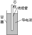 2、填空题 1999年7月12日,日本原子能公司所属敦贺湾核电站由于水管破裂导致高辐射冷却剂外流,在检测此次重大事故中应用了非电量变化(冷却剂外泄使管中液面变化)转移为电信号的自动化测量技术.如图是一种通过检测电容器电容的变化来检测液面高低的仪器原理图.容器中装有导电液体,是电容器的一个电极,芯柱外面套有绝缘管(塑料或橡皮)作为电介质,电容器的两个电极分别用导线接在指示器上,指示器上显示的是电容的大小,但从电容的大小就可知容器中液面位置的高低.由此作出下面的判断:如果指示器显示出电容增大了,则两电极正对面积______(填“增大”、“减小”或“不变”),必为液面______(“升高”、“降低”或“不变”).