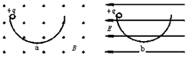 4、选择题 如图所示,两个半径相同的半圆形轨道分别竖直放在匀强电场和匀强磁场中,轨道两端在同一高度上,轨道是光滑的而且绝缘,两个相同的带正电小球同时从两轨道左端最高点由静止释放,a 、b为轨道的最低点,则