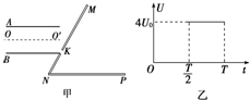 1、简答题 如图甲所示,水平放置的平行金属板A和B间的距离为d,金属板长L=2