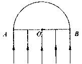 2、选择题 平行单色光a垂直射向一半径为R的玻璃半球的平面,其截面如图所示,发现圆弧AB上只有1/3区域有光射出(不考虑光反射后的折射光线)。若将a平行光换成b平行光,发现光从AB弧上射出的范围增大。下列说法正确的是
