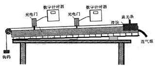5、实验题 如图所示为测量倾斜气垫导轨上滑块加速度的实验,A、B为气垫导轨上的两个光电门,当滑块从气垫导轨一端匀加速滑下,滑块上的挡光片通过光电门时,可通过连接在光电门上的电子仪器记录时间。