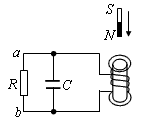 电阻R、电容C与一线圈连成闭合电路,条形磁铁静止于线圈的正上方,N极朝下,如图所示。现使磁铁开始自由下落,在N极接近线圈上端的过程中,流过R的电流方向和电容器极板的带电情况是( ? )
