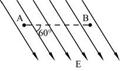 5、计算题 (12分)如图所示,在匀强电场中,有A、B两点,它们间距为2cm ,两点的连线与场强方向成60°角。将一个不知道电荷性质,电量为2×10-5C的电荷由A移到B,其电势能增加了0.2J。