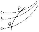 2、选择题  如图所示,虚线a、b、c代表电场中的三个等势面,实线为一带正电的质点仅在电场力的作用下通过该区域时的运动轨迹,P、Q为质点先后通过电场时轨迹上的两个点,由此可知(   )