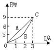 2、选择题 如图所示直线OAC为某一直流电源的总功率P随总电流I变化的图线;抛物线 OBC为同一电源内部消耗的功率Pr随总电流I变化的图线,则当通过电源的电流为1A时,该电源的输出功率为