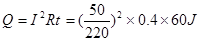 本题解析:电风扇正常工作时产生的热量是由于内阻发热产生的,所以每分钟产生的热量为