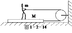 3、实验题 如图1-2-14所示质量为m=60kg的人站在质量为M=30kg的木板上,人和木板之间的动摩擦因数为0.4,木板和水平地面的动摩擦因数为0.2,今人用绕过定滑轮的绳子拉木板使木板和他自己一起向右作匀速直线运动,那么,木板一共受?个力的作用;人和木板之间的摩擦力为?N.
