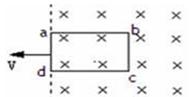 4、填空题 图中矩形线框ab边长l1=20cm,bc边长l2=10cm,电阻为20Ω,置于B=0.3T的匀强磁场中,磁感线方向与线框平面垂直,若用力拉动线框,使线框沿图中箭头方向以v=5.0m/s的速度匀速运动,求在把线框从如图位置拉出磁场过程中,通过导体回路某一截面的电量是 库仑,在此过程中外力做功是 焦耳.