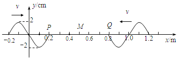 5、选择题  两列简谐横波分别沿x轴正方向和负方向传播, 两波源分别位于x=-0.2m和x=1.2m处,波速均为v=0.4m/s,振幅均为A=2cm。图示为t=0时刻两列波的图象(传播方向如图所示),此刻平衡位置处于x=0.2m和x=0.8m的P、Q两质点刚开始振动。质点M的平衡位置处于x=0.5m处,关于各质点运动情况判断正确的是(?)